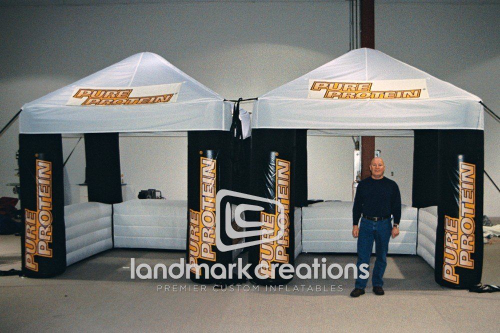 MET-Rx, a spots nutrition products retailer, promotes their Pure Protein products at health and sporting events with these custom inflatable gable style tents.
