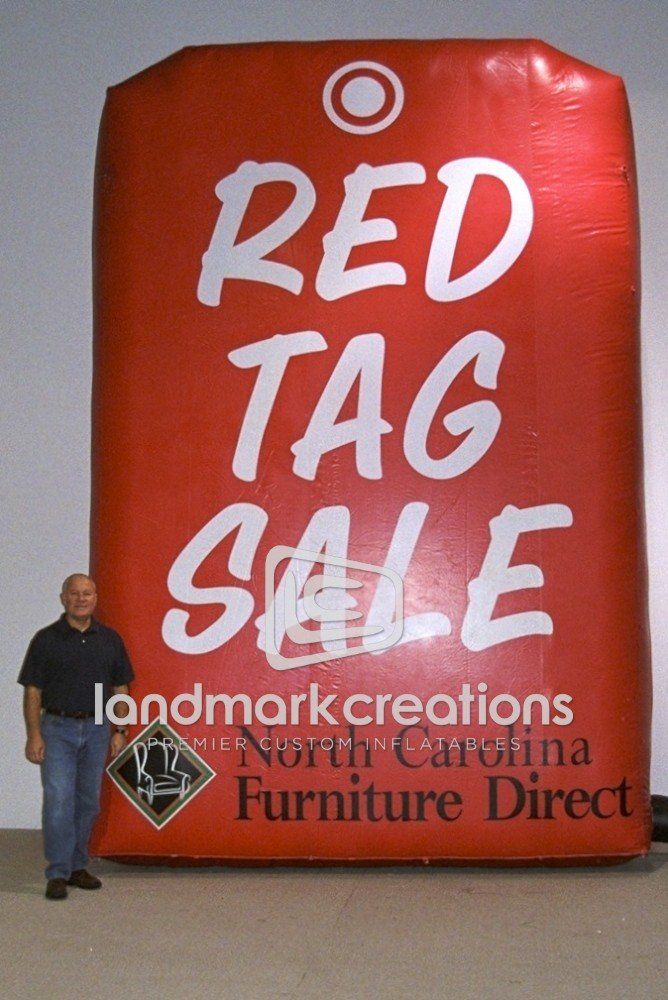 This inflatable Red Tag billboard is a creative marketing tool for furniture and retail promotions. Its bold design ensures it stands out and attracts customer attention.