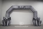 This Halloween-themed custom inflatable entrance arch was designed for the City of Plano, Texas for use at city festivals and events, including the Rest in Plano (RIP) Fest. Guests are greeted by the eerie glow of the inflatable arch's internal lighting system, which cast an otherworldly ambiance. The arch features two intricately designed gargoyle shapes seated at either leg, their watchful eyes capturing the essence of the Halloween spirit. Crafted with attention to detail, our custom inflatable entrance arch is not only a visual delight but also a durable and practical solution for outdoor events. It is designed to withstand the elements and provide a long-lasting presence at festivals throughout the Halloween season.