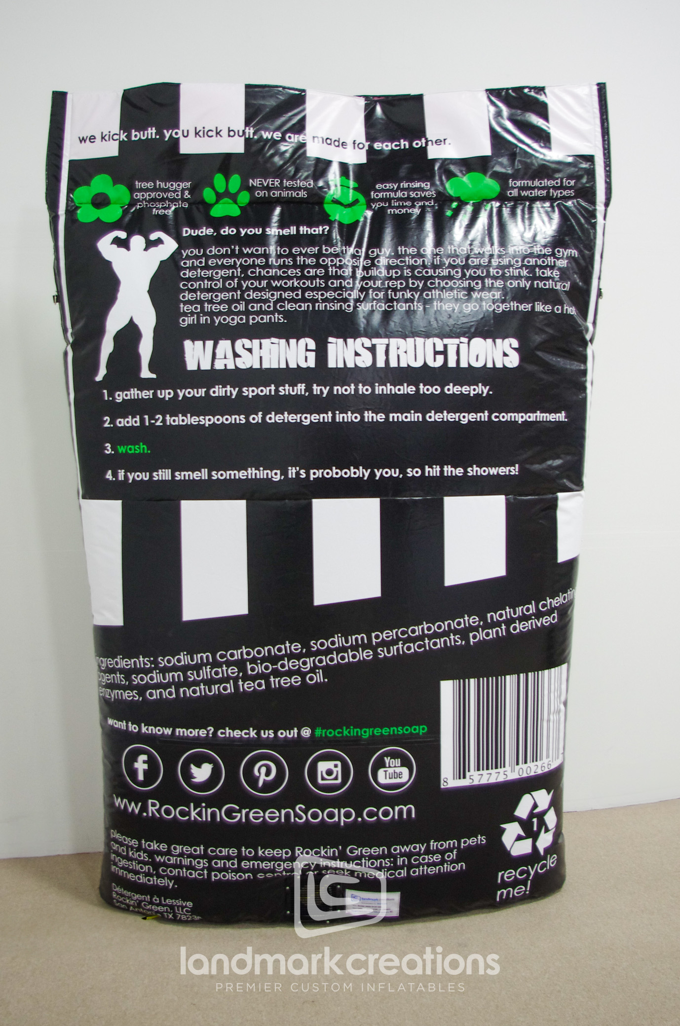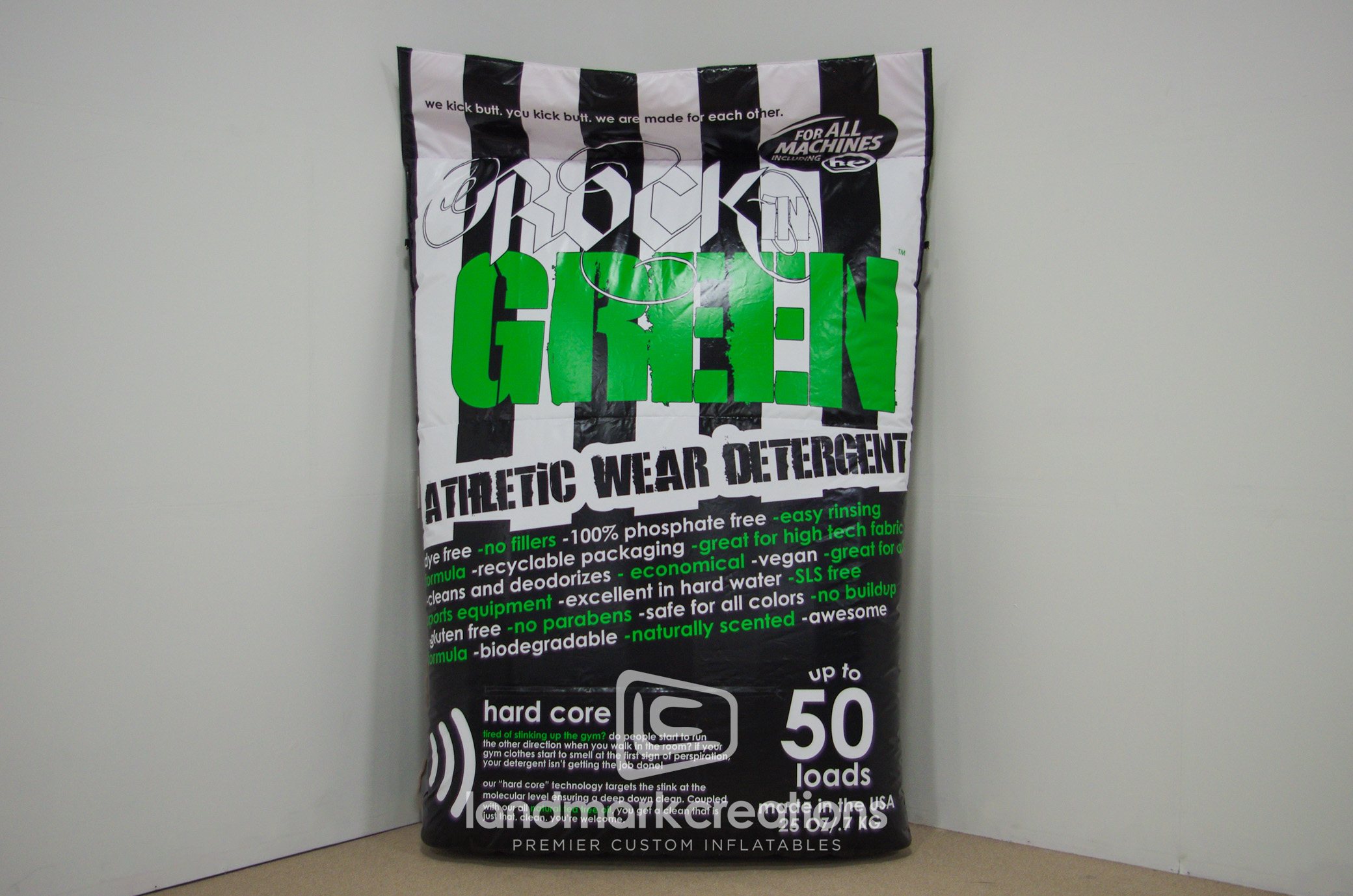 Highlight your brand with the Rockin' Green Trio, a stunning custom inflatable replica crafted for trade shows and retail promotions. Designed with precision and equipped with an internal fan system, this inflatable brings products to life with bold visuals that captivate audiences. Created for Rockin' Green, LLC, this 10x6.5x2-foot display is perfect for indoor or outdoor events, showcasing your product in a dynamic and engaging way.