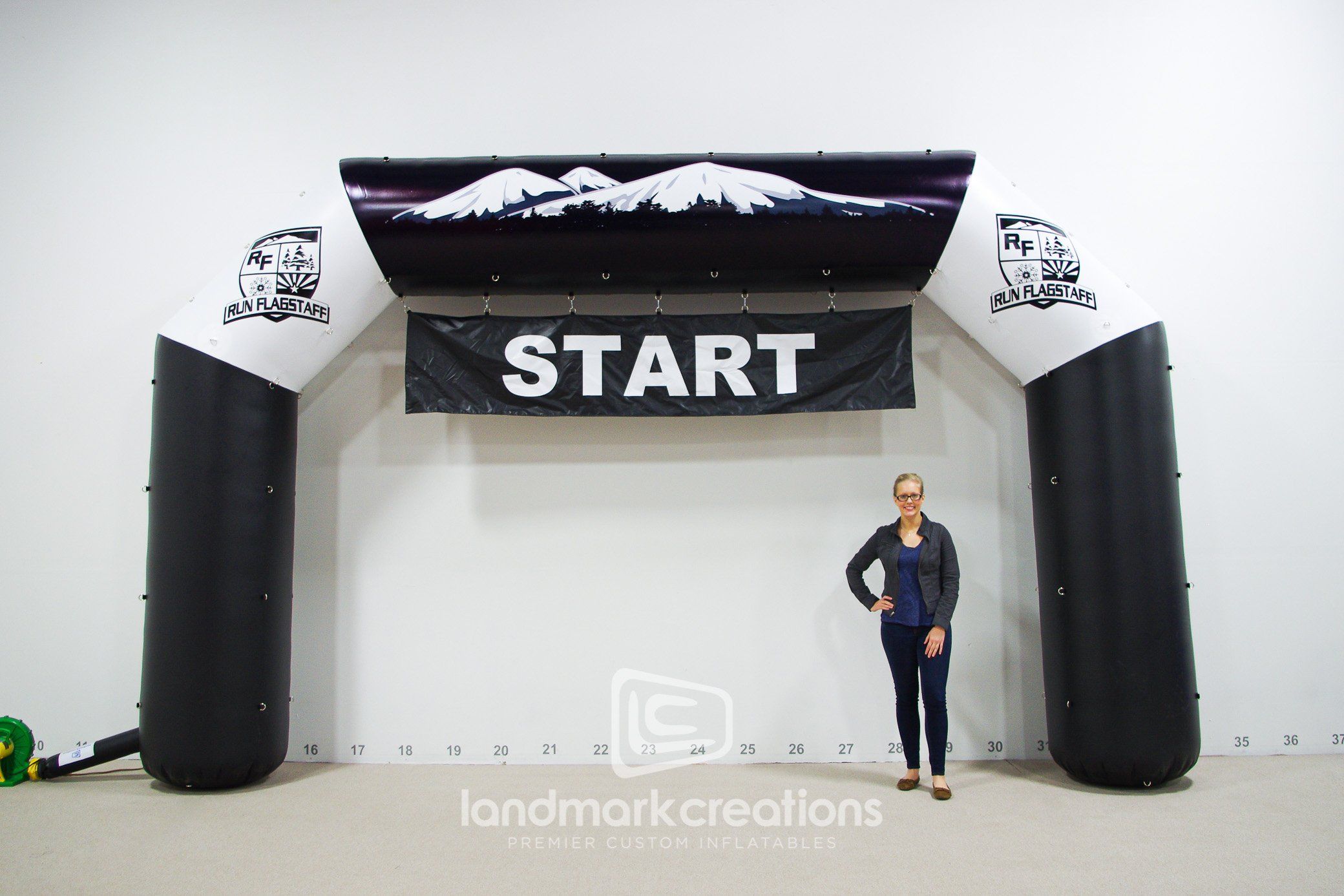 Run Flagstaff, a running company in Arizona, uses this inflatable start and finish line arch for sporting events and races. The arch’s sturdy D-ring fastenings allow the banner to be changed out for future events.