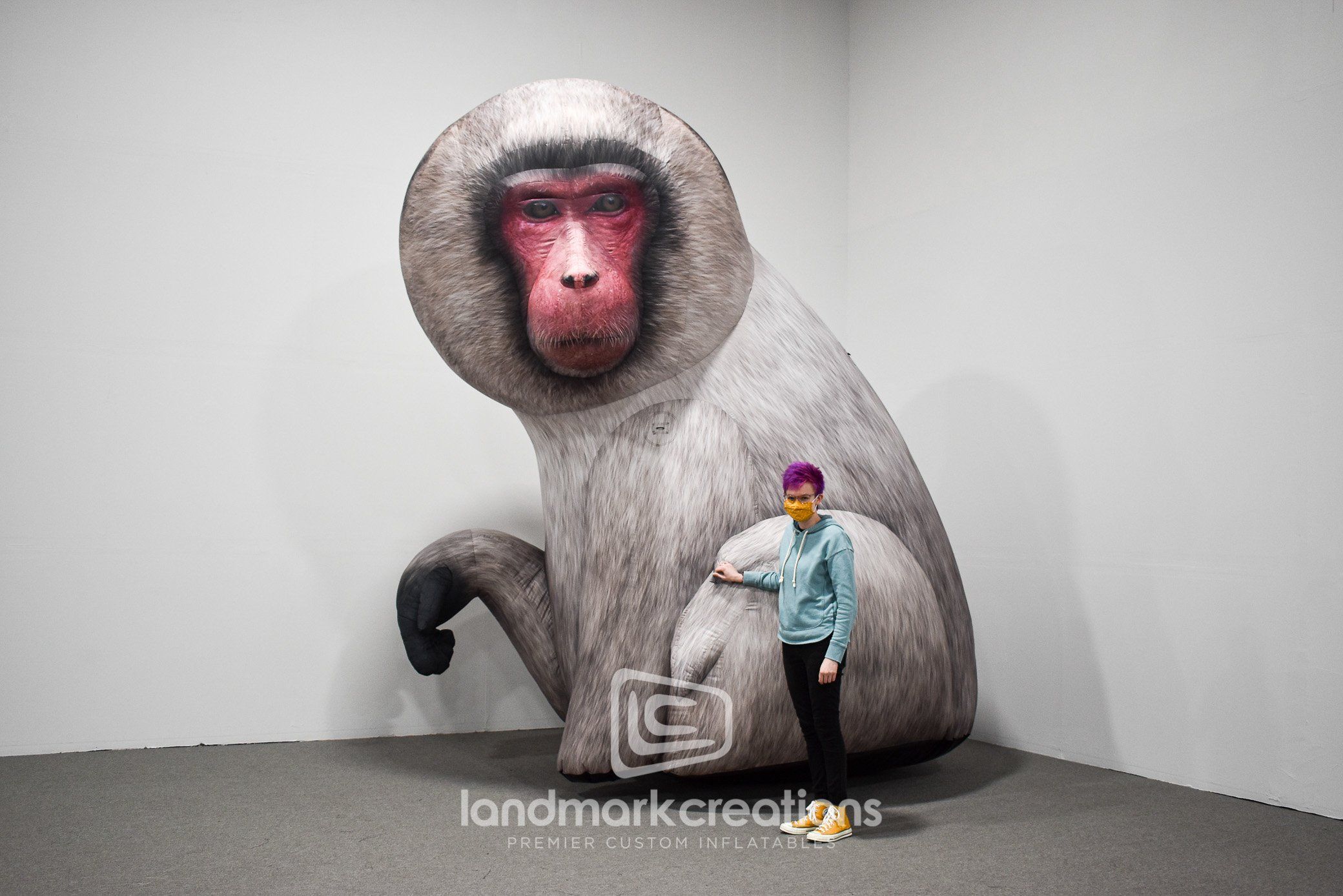 This giant snow monkey greets guests at the Minnesota Zoo's outdoor exhibit, "Nature Illuminated". The snow monkey, along with the Amur tiger and brown bear, greet visitors who enter the temperate forest biome section of the exhibit. With its highly detailed texture and internal light system, this display performs well both day and night.