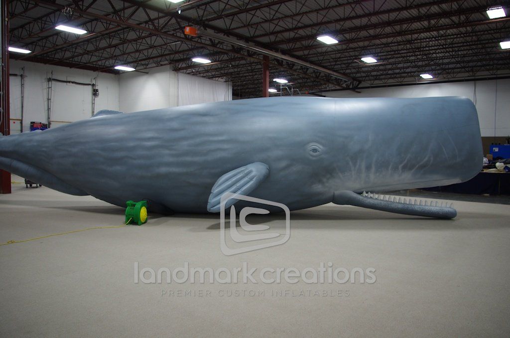 This massive and extremely realistic inflatable whale display for Mystic Seaport is mounted onto a custom trailer and used as a rolling educational exhibit. The Museum of America and the Sea teaches visitors about the history of whaling.