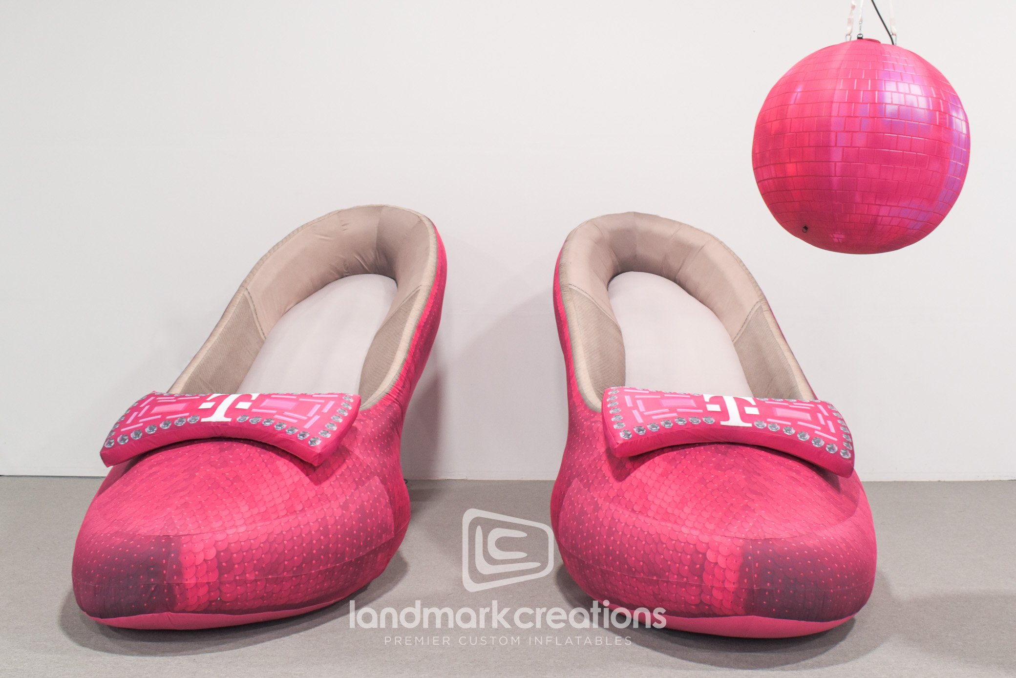 Need to create thematic visuals for a sponsored event? T-Mobile created these fabulous sequin heels and disco ball in their signature pink to add sizzle and brand recognition to
