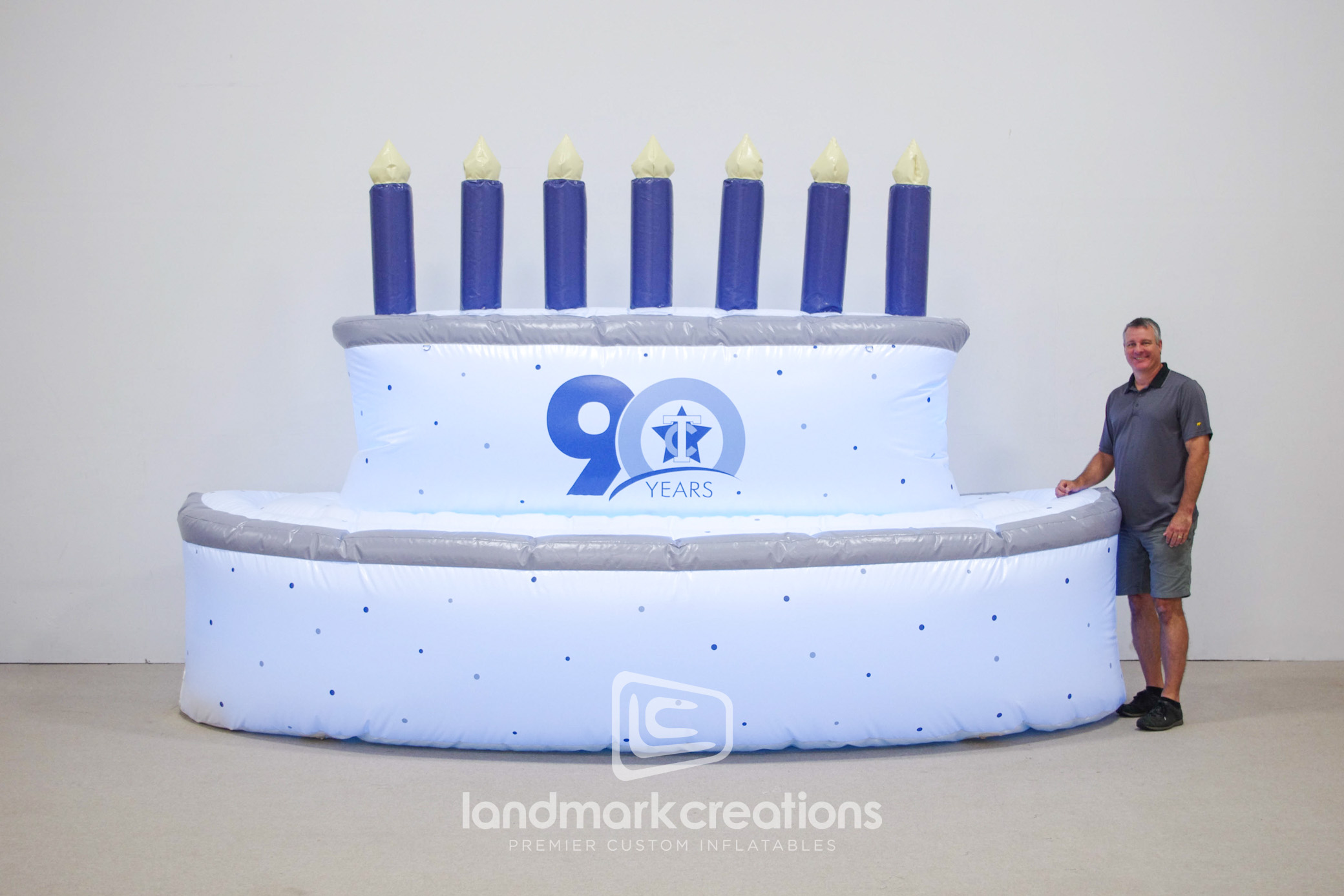 To celebrate TCI's 90th anniversary, a giant inflatable birthday cake was created, standing as a centerpiece at their commemorative events. This custom inflatable adds excitement and a festive atmosphere, making the milestone memorable for all attendees.
