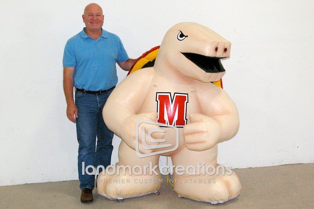 Testudo, the official mascot of the University of Maryland, is not your ordinary diamondback terrapin. The University of Maryland had Testudo turned into this one-of-a-kind inflatable mascot, perfect for sporting events and alumni get-togethers.