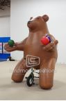 A giant, juggling bear atop a tricycle? What fun! This inflatable toy bear character is used during local parades! Children are in awe when a giant bear comes rolling down the street.