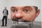 Artist Jeffu Warmouth filled this Head-Bowl with dozens upon dozens of smaller fabric heads, all self-portraits, to create the central piece in his solo exhibition at the Boston Sculptors Gallery, entitled Urgent Blowout.