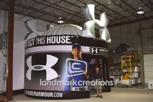 Mass-produced, off-the-shelf inflatables seen at hardware stores are generally made for limited, light use. They are not designed for special applications such as rooftop or interactive installations. When your promotion calls for creative outdoor advertising balloons that can stand up to extended use in any application, trust Landmark Creations to design, produce and deliver top-quality inflatables and outdoor signage that are well-suited for exterior uses and exceed your expectations.