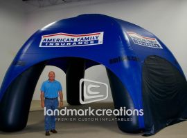 7 Days, a snack company, attracts attention and creates a shelter for employees at mobile branding events with this custom-designed inflatable tent. Dome-shaped, AirTent inflatables offer 360-degrees of visual branding.