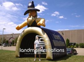 Americas High School, home to the Blazers, use their inflatable mascot tunnel to intimidate competitors at football games.