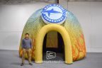 Landmark Creations partnered with Mote Marine Laboratory & Aquarium to create a stunning Brain Coral Tent inflatable. This 15 x 19 x 19-foot dome, inspired by Florida’s native coral reefs, features detailed flat art depicting staghorn coral and a dimensional logo to reflect Mote’s conservation-focused mission. With a 10-foot interior height, this inflatable is designed to fit standard exhibit halls, making it an engaging, portable solution for educational tours and museum events. Perfect for promoting marine biodiversity and sustainability, this inflatable dome brings the ocean’s beauty to life.