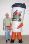 Inflatable characters are a great way to make an emotional connection with consumers on location or at marketing events. Costumes, like this inflatable cup for Cuppy's Coffee, are lightweight, easy to manage, and are a fun way to advertise.