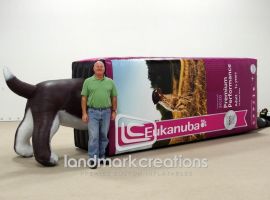 Dog nutrition company, Eukanuba, promotes their puppy food to new pet owners at marketing events and trade shows with this fun inflatable product replica.