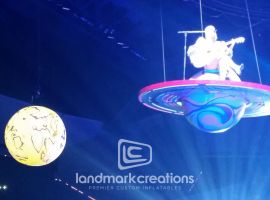 This custom inflatable robot looked like it was straight out of a sci-fi fantasy, adding an element of futuristic wonder to Katy Perry's performance at Kaboo!. It also featured a programmable LED visor that lit up with an array of vibrant colors and mesmerizing patterns. The visor became a pulsating focal point, enhancing the visual spectacle and immersing the audience in a world of technological marvel. One of the most remarkable aspects of custom inflatables is their versatility. They can take on any shape or size, allowing artists and performers to bring their wildest visions to life. And the best part? When deflated, these giant creations pack down into a fraction of their inflated size, making them incredibly convenient to transport and store. With the ability to quickly inflate onstage, custom inflatables create an instant spectacle that leaves audiences in awe. Whether it's a giant robot, an enormous creature, or a larger-than-life prop, these inflatables transform any performance into a grandiose affair, immersing viewers in a world of imagination and larger-than-life visuals.