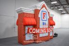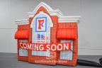 Food City partnered with Smoky Mountain Balloon Adventures to develop a versatile inflatable storefront replica. Designed to promote new store locations at high-traffic events like NASCAR, this inflatable replica can be easily customized with interchangeable banners for each occasion. Its durable construction ensures long-term use, making it an ideal centerpiece for outdoor promotions and drawing attention wherever it's displayed.