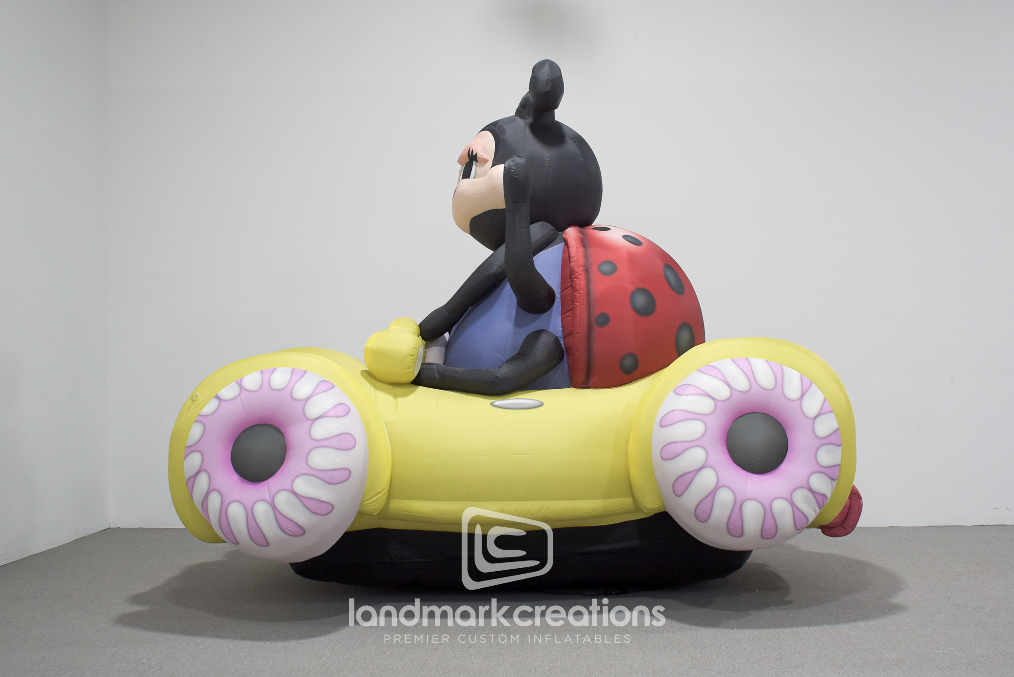 This custom 10x10 inflatable LadyBug Car, created for the art collaboration FriendsWithYou, brings joy and creativity to every space it inhabits. Designed as part of an outdoor art display, it was featured in Washington, D.C., alongside whimsical characters and nature-inspired elements. Its bright colors and soft, approachable form make it an ideal addition to stage productions, art installations, and cultural events, captivating audiences with its playful charm.