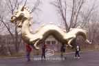 The Charlotte Thanksgiving Parade dazzles the crowd with a giant, golden dragon inflatable. Carried by six people, this metallic dragon is both eye-catching and memorable.