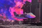 During Justin Bieber's "Justice Tour" in 2022, the set design featured a custom inflatable airplane, which was prominently displayed at the top of the show with Bieber standing on top of it, before the artist was lowered through a specially fabricated crate/cage onto the main stage, allowing for a dramatic entrance and a unique performance experience for his fans.