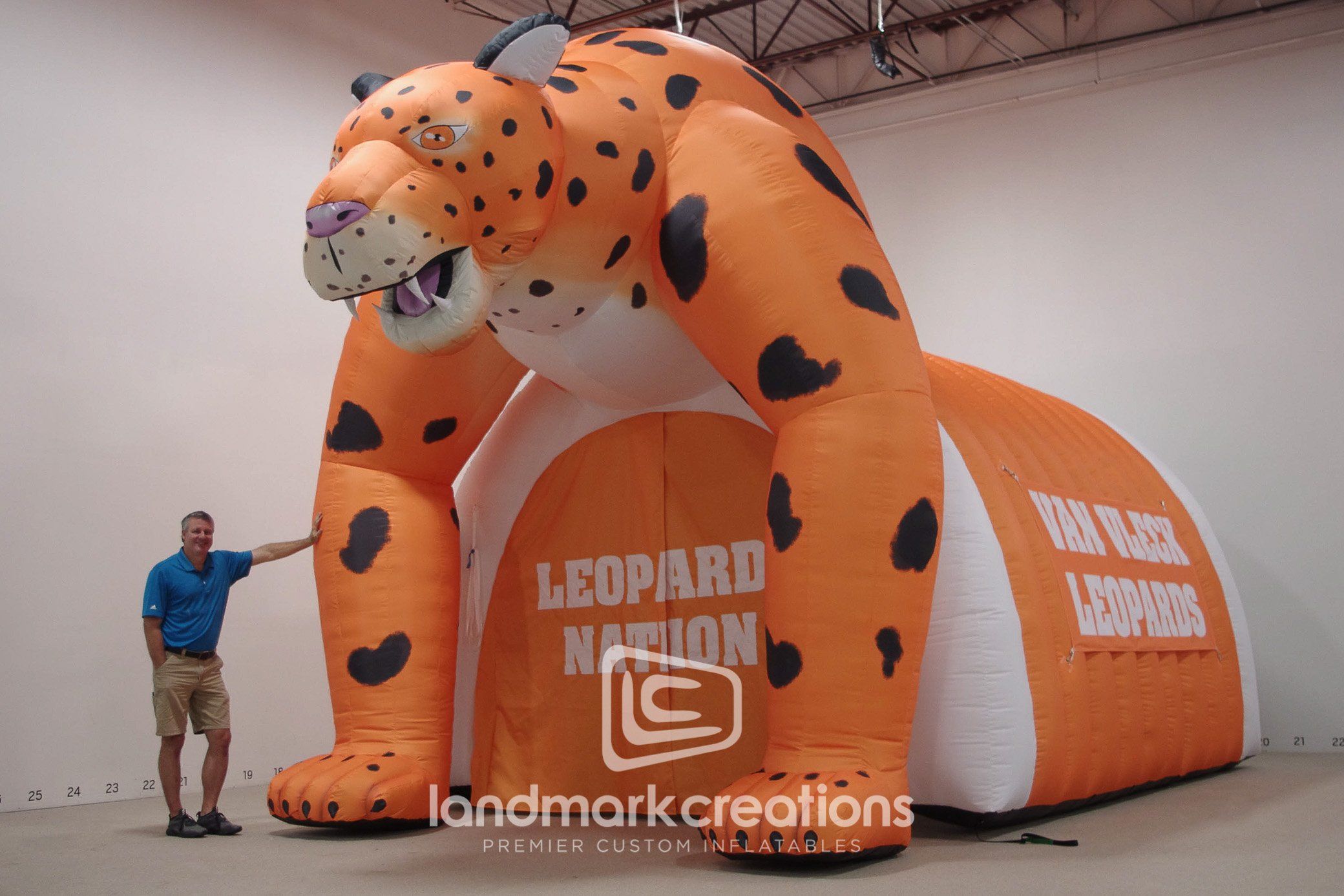 Raise team spirit for your sports club or school events with a custom leopard or cheetah inflatable tunnel. Custom messaging and art available.