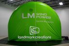 LM Wind Power Service & Logistics, a leading supplier to the wind turbine industry, built trust with customers through face-to-face marketing at events using this 17-foot custom inflatable q-hut.