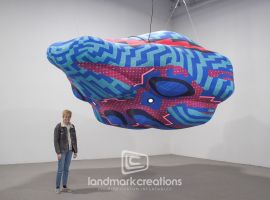 This giant inflatable abstract sculpture was created as a display piece on the second story balcony of the Museum Villa Stuck as part of Misha Kahn's "Under the Wobble Moon" exhibit. Custom inflatables make perfect statement pieces because they're easy to set-up and store between events, which allows artists and art museums to add large visuals to an exhibit space at the flip of a switch. #MISHAKAHNMVS