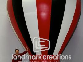 This red and black inflatable hot air shape for OPTUS World helped customers easily find their new location during grand opening week!