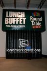 Getting a custom message across is easy with an inflatable billboard. Restaurants, like Round Table Pizza, drive traffic to their lunch buffets by placing a giant billboard outside.