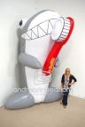 Le Petite Dentistry maximized exposure at the 2012 Hudson Booster Day Parade by inflating this giant shark mascot with toothbrush, of course! and placing it on a trailer bed!