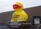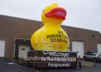 Spa Manufacturers inflated this giant rubber duck on a hot tub at the Florida State Fair to attract attention and increase sales. The massive inflatable duck can be seen from far and wide!