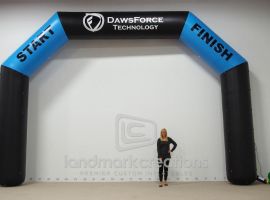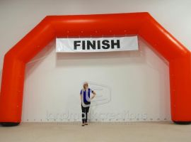 Tuxedo Brothers uses their custom inflatable arch to portray a professional image at triathlons. Extra display areas allow room for interchangeable sponsorship banners.