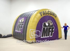 Leaders Credit Union purchased this custom sports tunnel for the Union City Tornados football team. Designed with sponsorship banners and the Union City logo on the break away doors, this inflatable football tunnel got lots of attention.