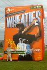 Up & Away Advertising Promotions collaborated with Landmark Creations to create a striking 20 x 14 x 5-foot Wheaties box inflatable featuring Tiger Woods. This giant product replica is designed for event marketing, drawing attention to food brands with its bold and memorable design. Perfect for outdoor or indoor events, this inflatable showcases iconic branding, making it an ideal centerpiece for food product marketers looking to create impactful, larger-than-life displays.