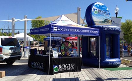 “We wanted to convey our 'money-saving' message; what better way than a 14-foot-tall inflatable booth with money flying around in it?”