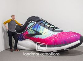 In collaboration with Moss, Inc., Landmark Creations crafted a stunning Adidas Samba inflatable replica for retail displays. This 4 x 10 x 3.5-foot right shoe, illuminated with a warm-tone internal light system, was designed as part of Moss’ creative vision to enhance brand storytelling. Suspended in a retail window, this custom inflatable combines Adidas’ iconic style with Moss’ innovative approach to experiential design, creating a captivating centerpiece that elevates retail promotions.