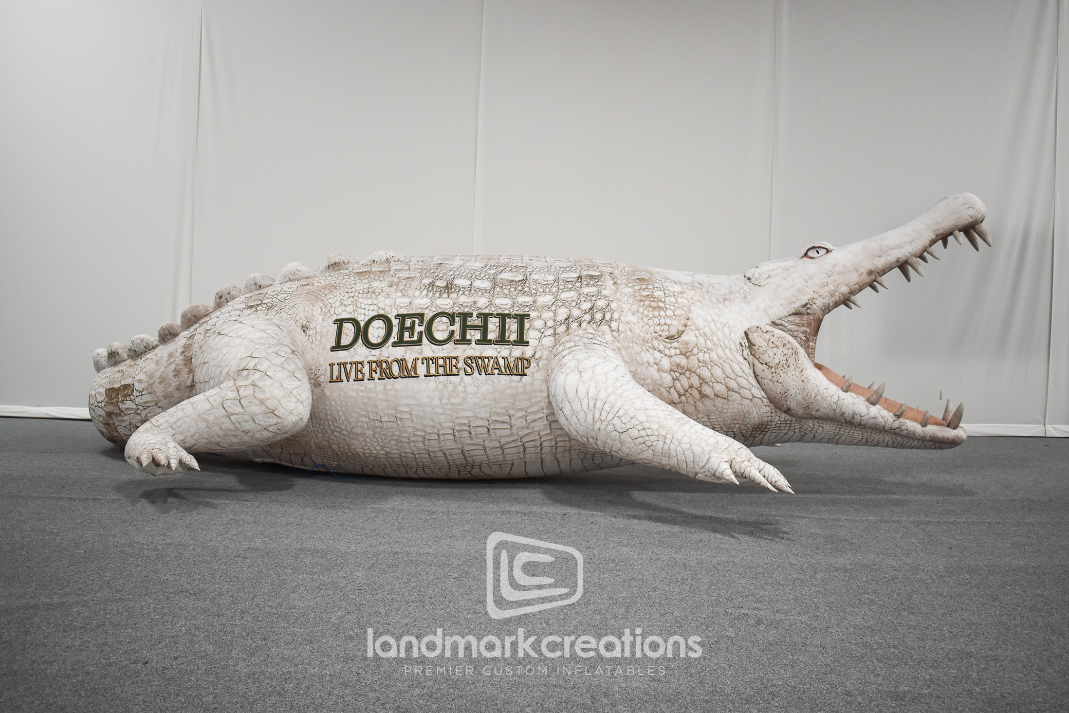 To bring Doechii’s Live from the Swamp tour to life across outdoor venues, Landmark Creations built two custom inflatable albino alligators for Live Nation. Each large-scale replica introduced bold, thematic visuals that elevated stage design while creating unique, photo-worthy moments for fans. With updated surface art and the tour’s logo incorporated, these inflatables highlight how custom-built pieces can enhance touring productions with immersive, eye-catching displays.