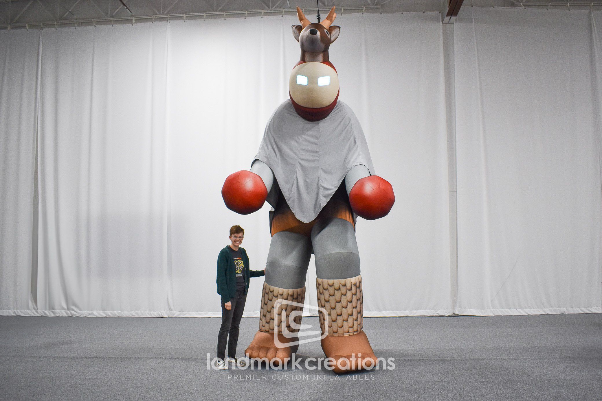 Landmark Creations partnered with FrameWorx to craft a 14-foot custom inflatable of Carin Leon’s Pascolas Maracas character, designed for stage productions. Featuring DMX-controllable LED lights for the eyes, this visually striking inflatable enhances the energy of concerts and tours across North America. Whether for concerts or touring shows, our inflatables bring your creative vision to life, turning stages into unforgettable experiences.