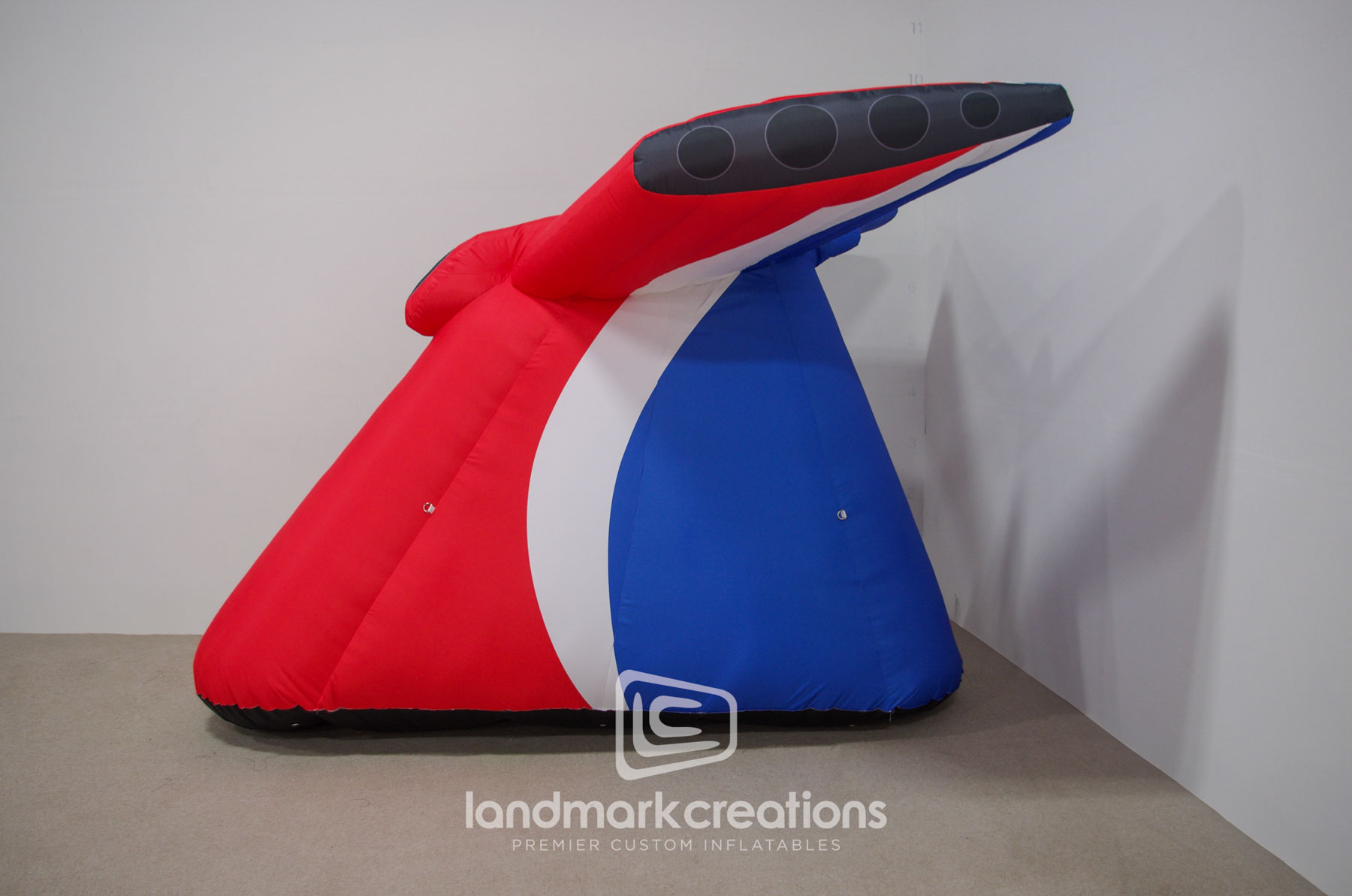 This custom inflatable Carnival ship funnel replica was designed for Allied Experiential and mounted on a truck for a one-day promotional event in Burbank, CA. While its specific usage details are limited, the vehicle-mounted design demonstrates our ability to produce large-scale, eye-catching inflatables that enhance experiential marketing campaigns. This project reflects our skill in crafting custom inflatable product replicas for mobile promotions and brand activations.