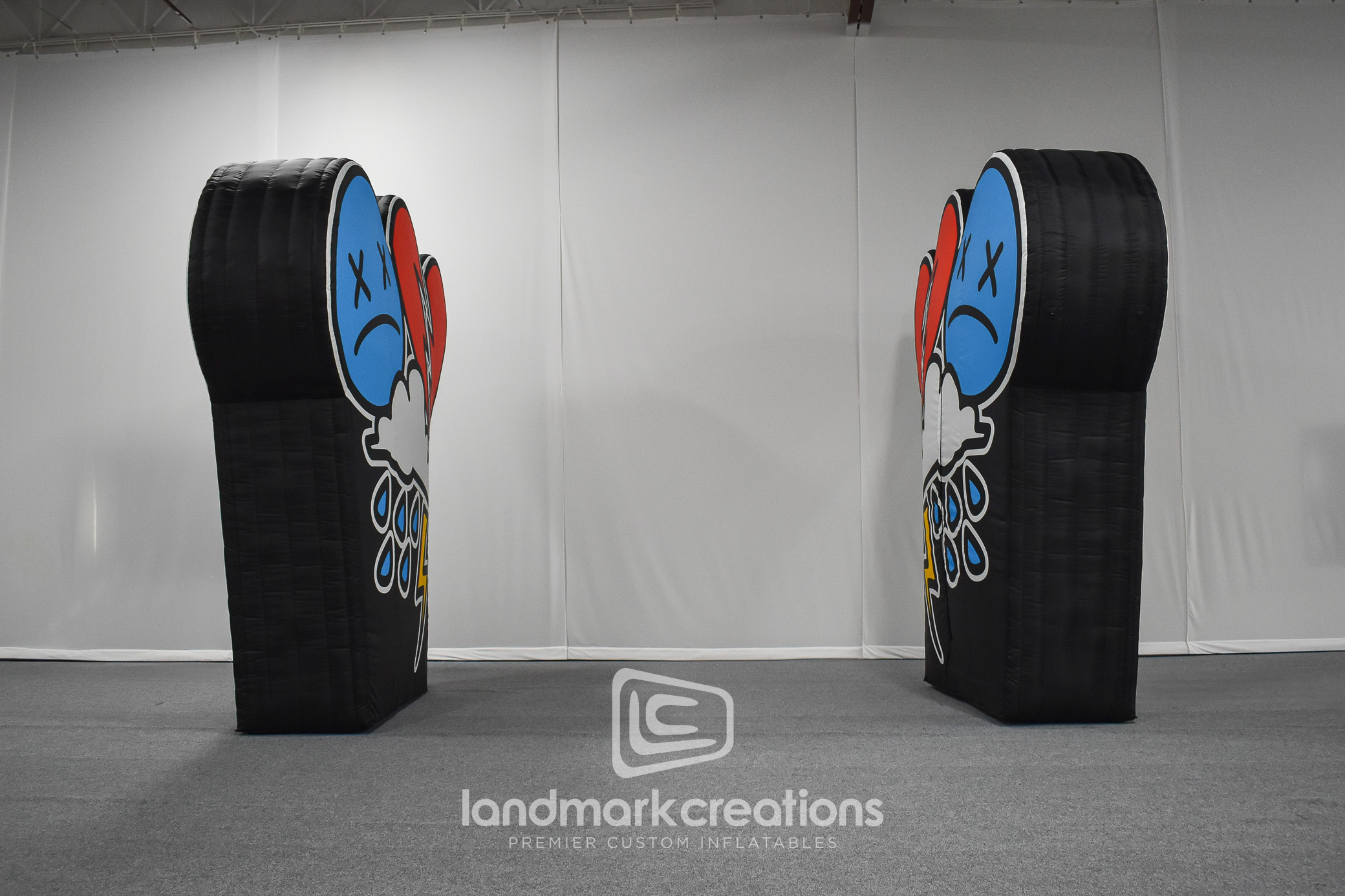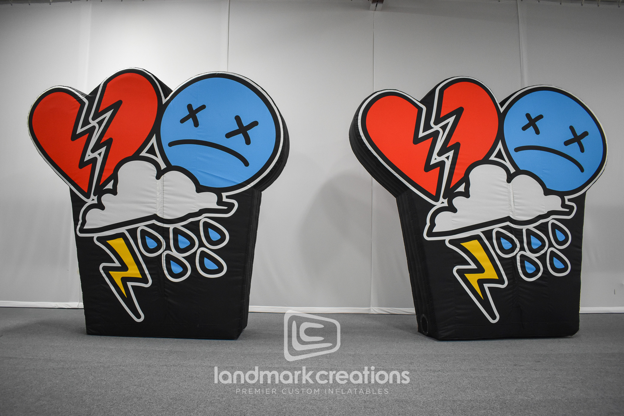 Simple Plan’s North American tour called for a bold, high-contrast centerpiece—so they turned to Landmark Creations for a custom inflatable billboard featuring a mix of whimsical icons: a cloud, a face, and a heart. Standing 13 feet tall, this eye-catching display helped define the visual identity of the tour and added dimension to the band’s stage production. Built to travel and install efficiently, the freestanding inflatable shape delivered strong branding and emotional impact across venues of all sizes.