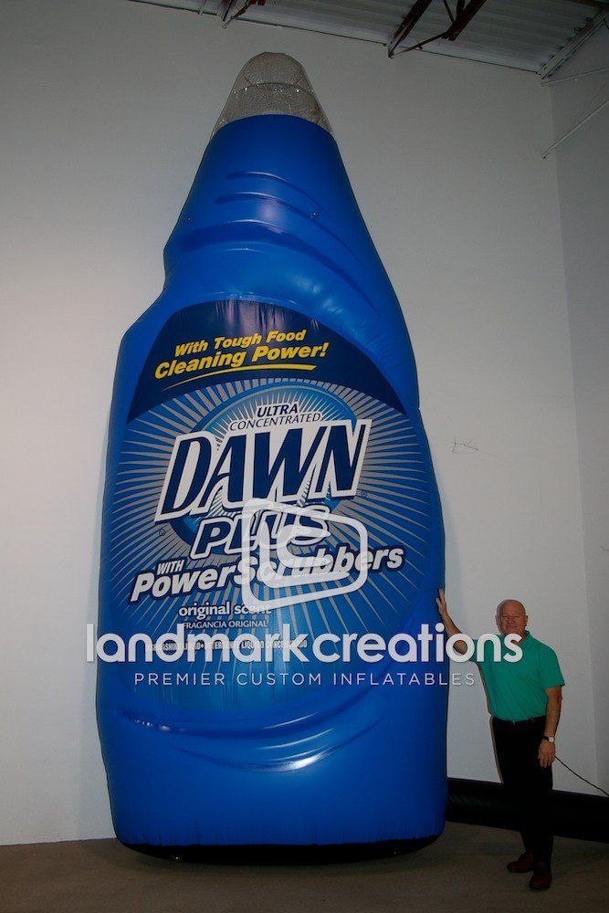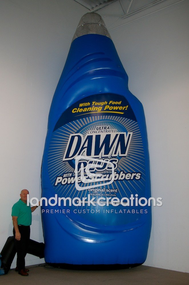 Dawn uses this 20-foot inflatable replica of their Dawn Plus with Power Scrubbers dish soap to advertise outdoors at retail locations, including grocery stores and supermarkets.