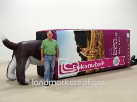 Dog nutrition company, Eukanuba, promotes their puppy food to new pet owners at marketing events and trade shows with this fun inflatable product replica.