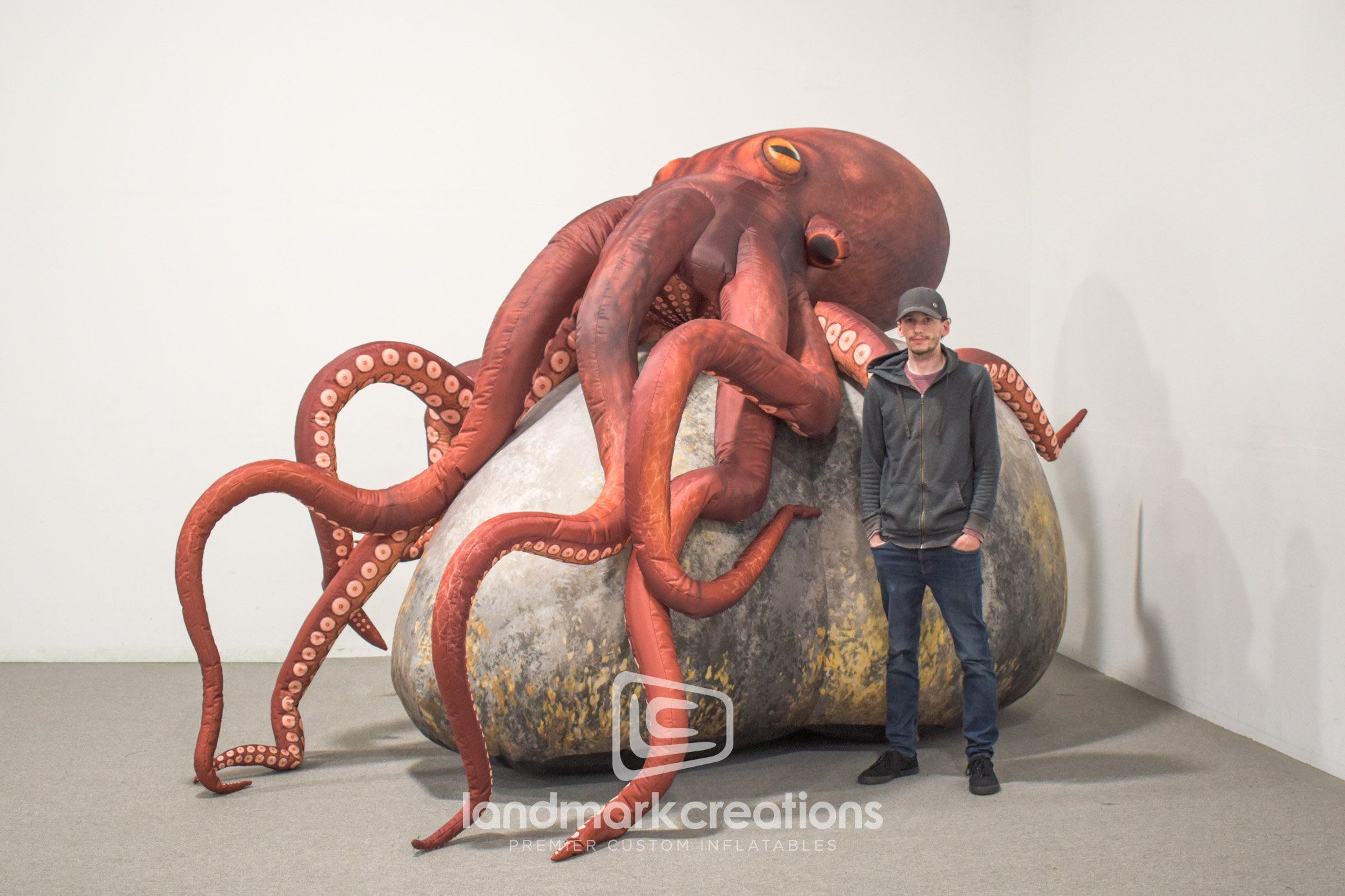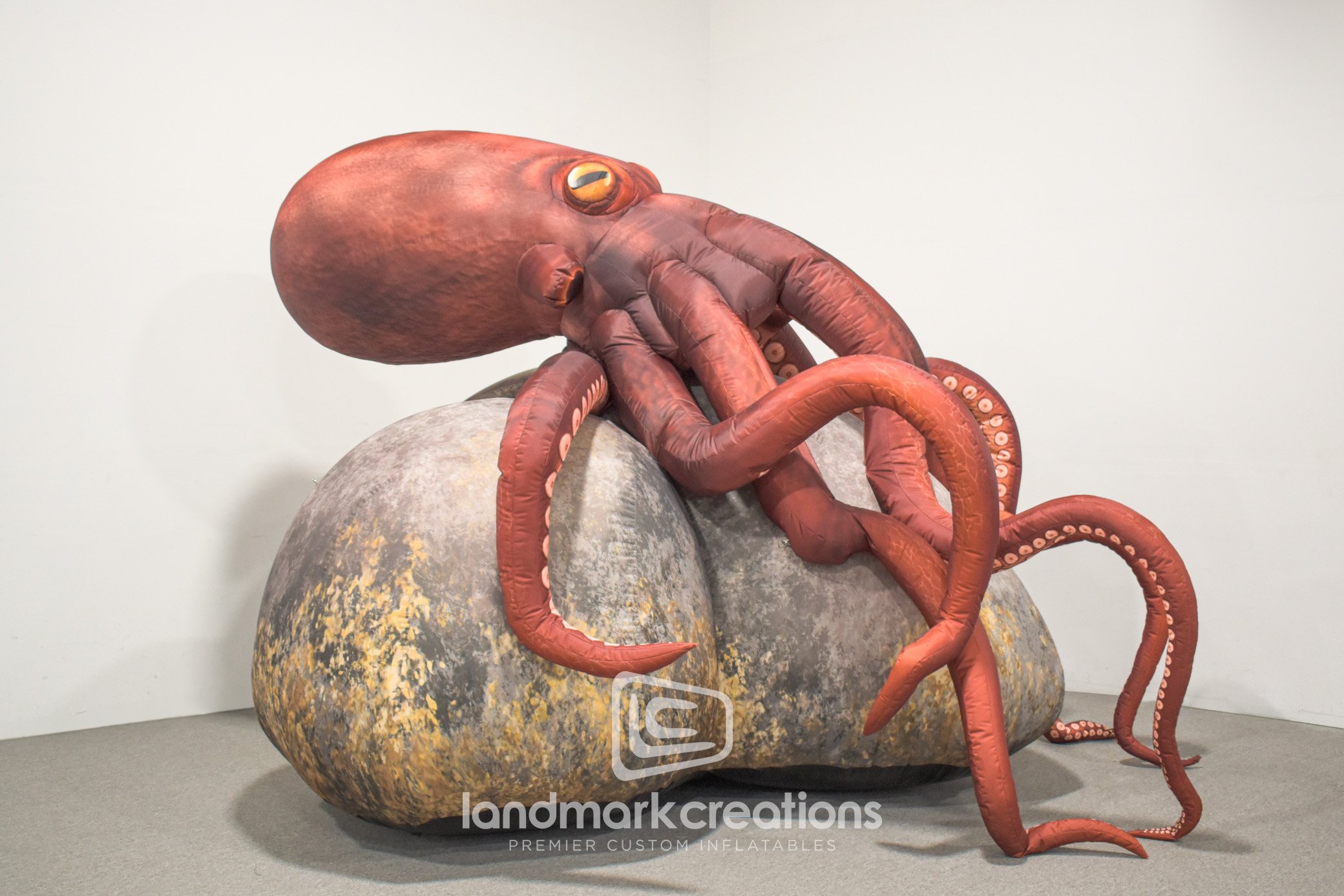 Landmark Creations crafted this Giant Pacific Octopus inflatable for Discovery Cube Orange County’s summer exhibit, Ocean Encounter. Measuring 15 feet in length, this striking replica is designed to captivate visitors with its realistic details and vibrant colors, creating an unforgettable experience for museum-goers of all ages. Complete with white lights for added visual impact, this custom inflatable elevates outdoor promotions, enhancing educational engagement and thematic storytelling.