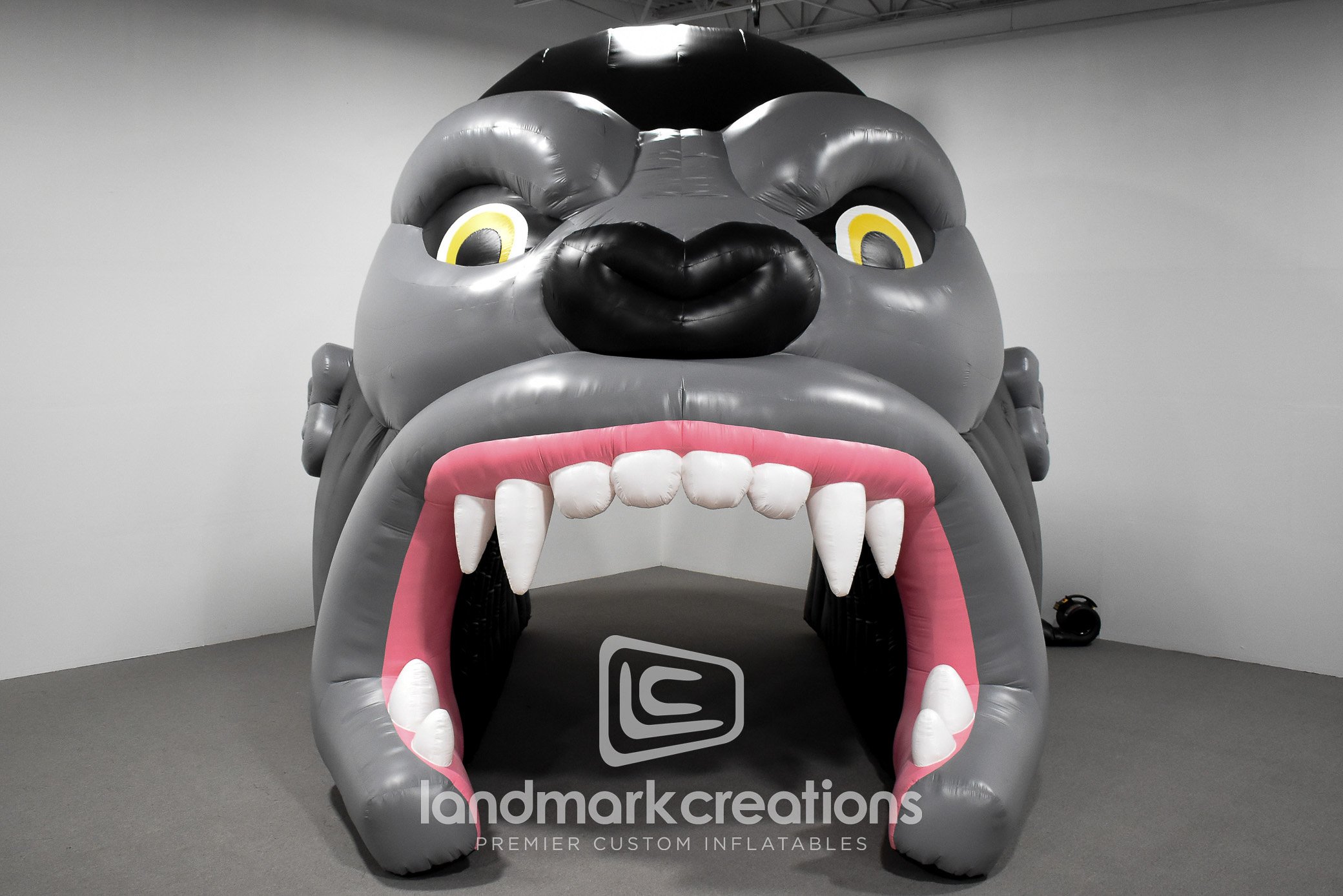 Seasonal retailer, Hale Fireworks, uses a giant inflatable gorilla head entrance tunnel to promote their popular "Kong" line of firework products. Inflatable entrance tunnels can draw attention to temporary retails spaces while offering a unique photo opp for shoppers. Inflatable displays pack small, so they're also very easy to transport and store between seasons.