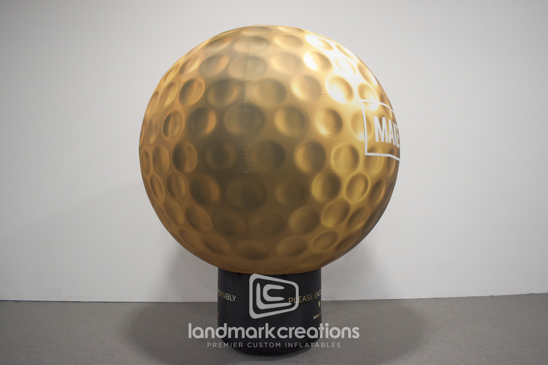 Korbel, sponsor of the 2021 ACC Men's Golf Championship, created this giant gold golf ball replica display as part of its drinking responsibly campaign in partnership with Responsibility.org. Custom inflatable replicas make perfect photo opps, allowing event sponsors to extend the reach of their message on attendee's social media channels well beyond the event.