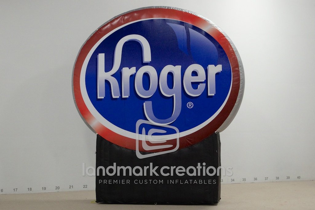 Kroger, one of the largest grocery retailers in the U.S., increases brand recognition at supermarket and community events by inflating their giant Kroger logo.