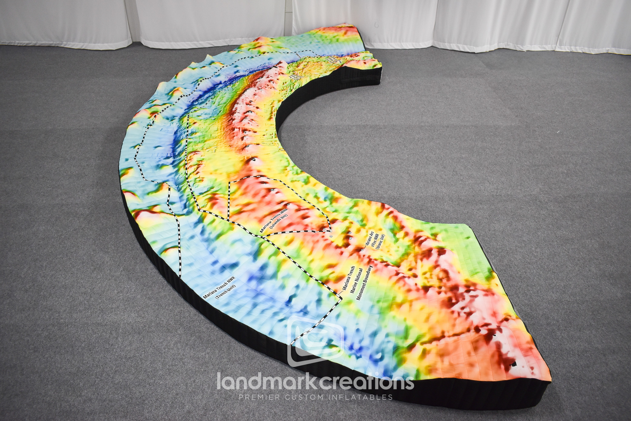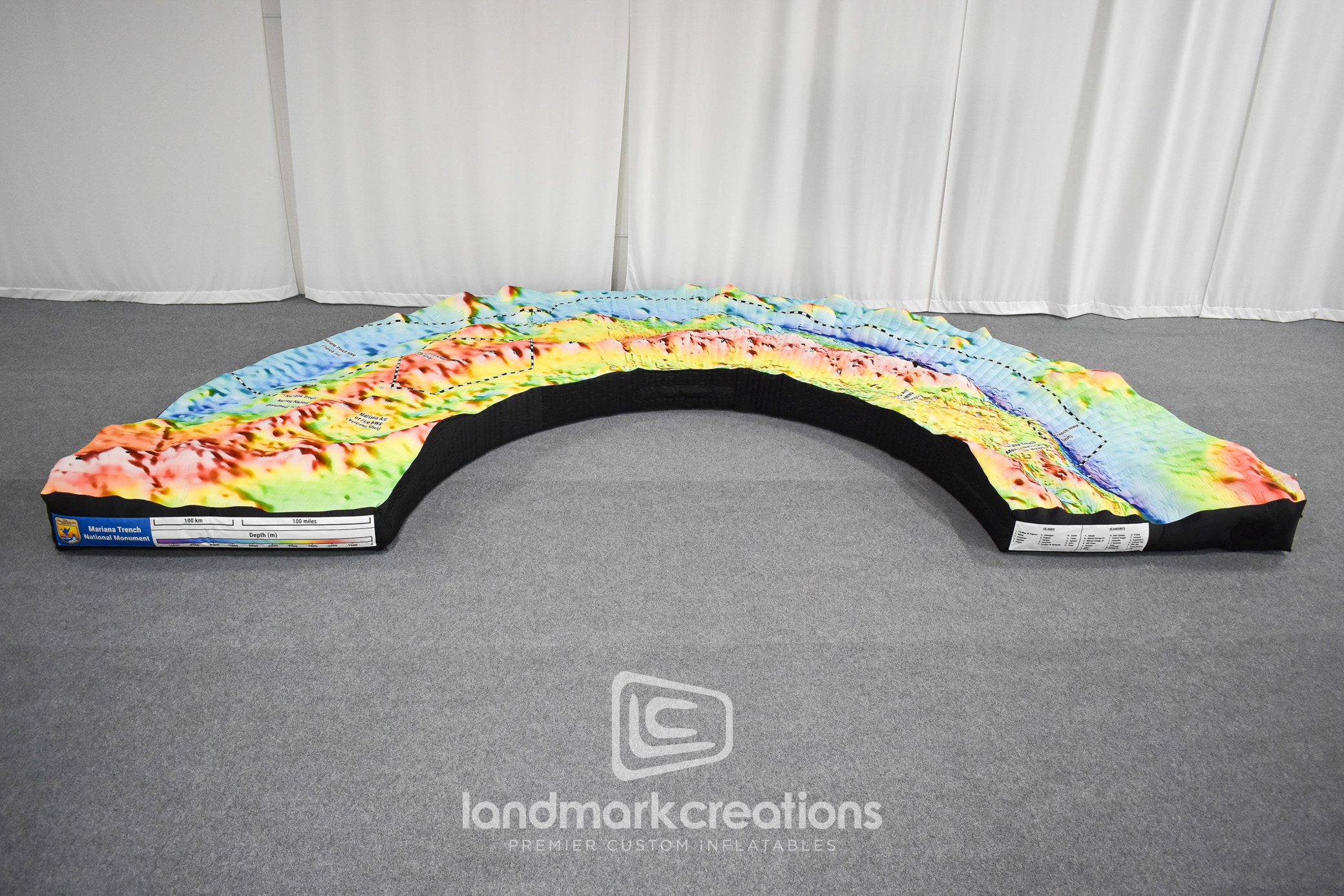 Landmark Creations partnered with the U.S. Fish and Wildlife Service to craft a custom inflatable replica of the Mariana Trench. Designed for ease of transport and installation, this scaled-down version maintains its impactful visual presence while meeting airline size restrictions. Perfect for educational tours, this floor-mounted inflatable sparks curiosity and engagement, bringing the wonders of the ocean to audiences around the world.
