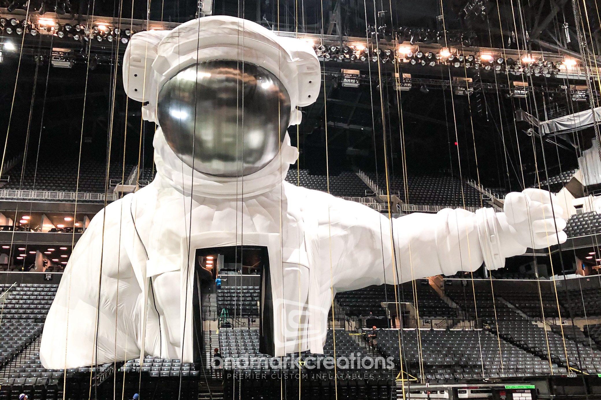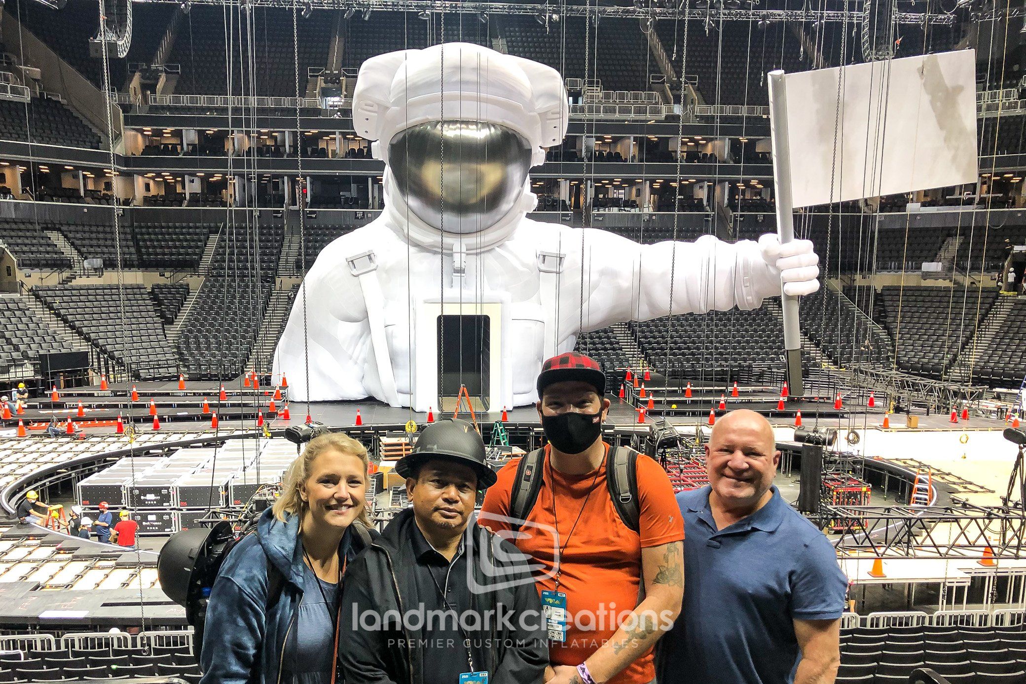 MTV's iconic Moon Person astronaut was transformed into a fifty-five foot tall inflatable stage display offering a perfect canvas for awe-inspiring 3D projection and AR effects at the 2021 VMAs.