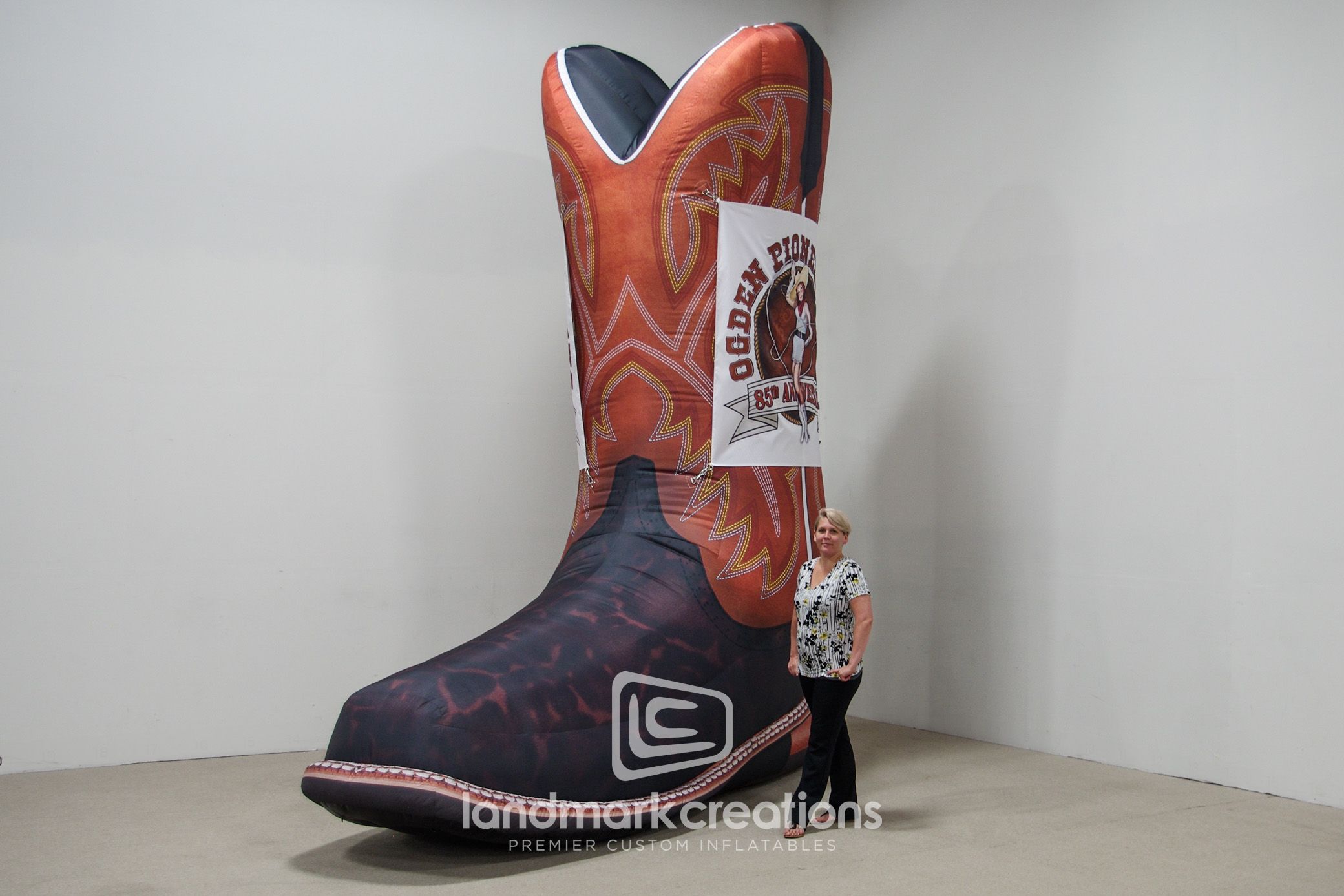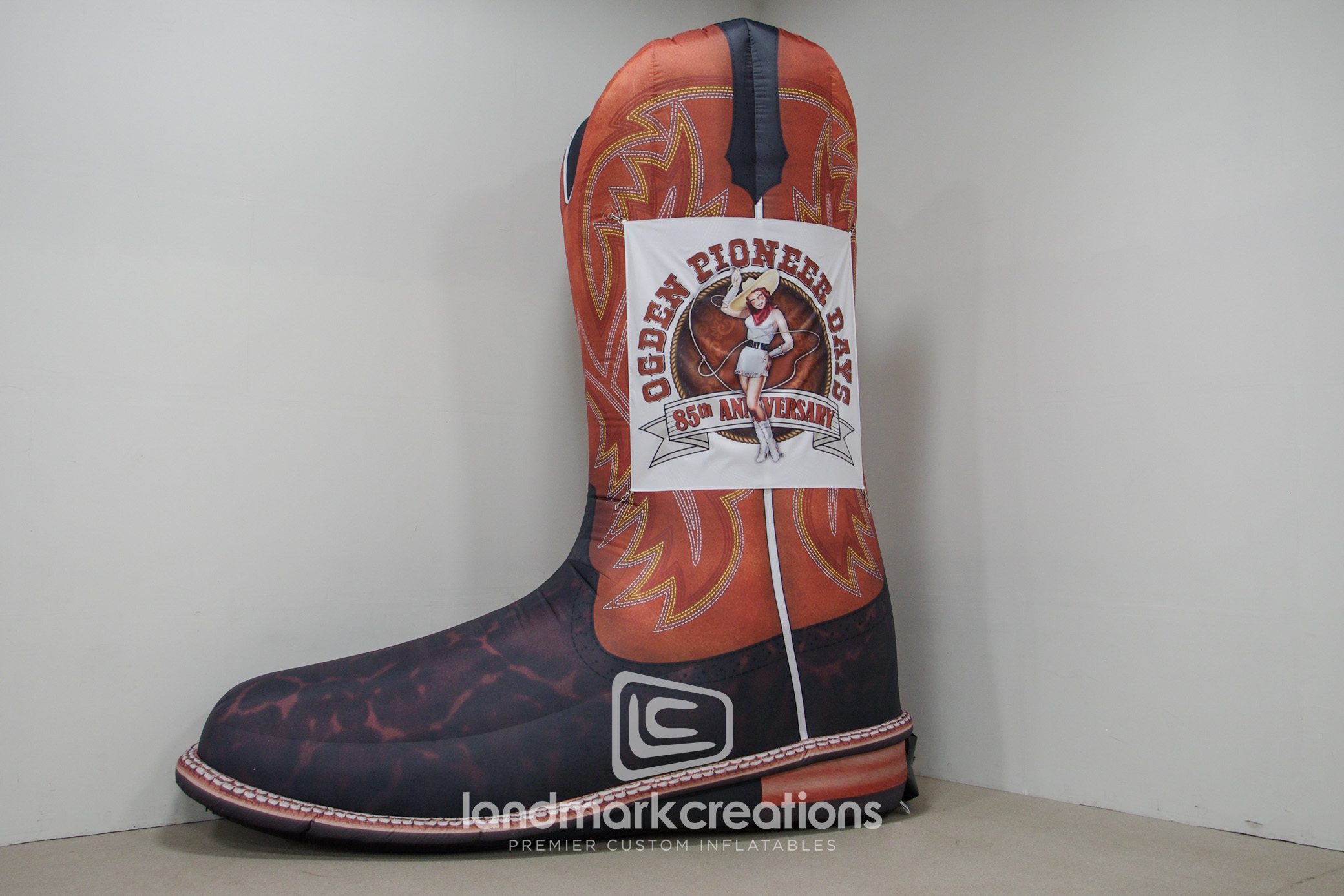 Landmark Creations crafted a custom inflatable cowboy boot for Ogden Pioneer Days, a nonprofit organization dedicated to honoring western heritage. This impressive replica added excitement to the annual July celebration in Ogden, Utah, featuring parades and concerts. The inflatable served as a unique photo opportunity for attendees, enhancing engagement and creating lasting memories.