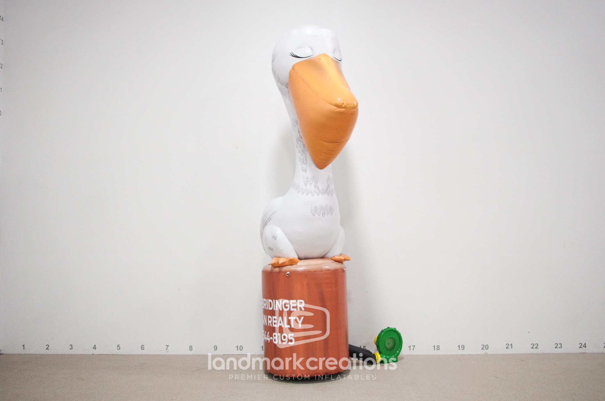 Your business will surely stand out with a friendly, inflatable mascot! This custom-built pelican welcomes potential buyers at open house events for a Florida realtor.