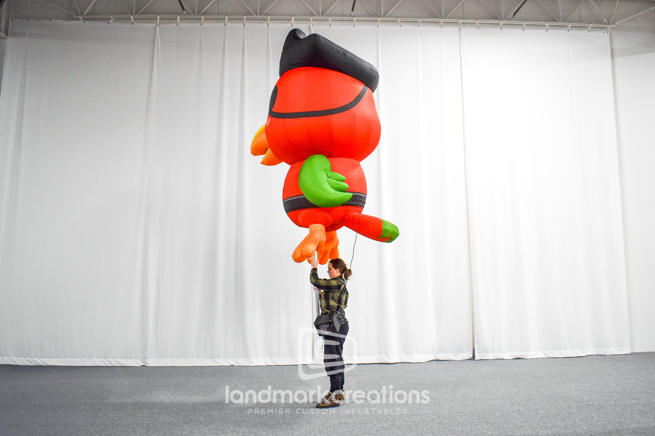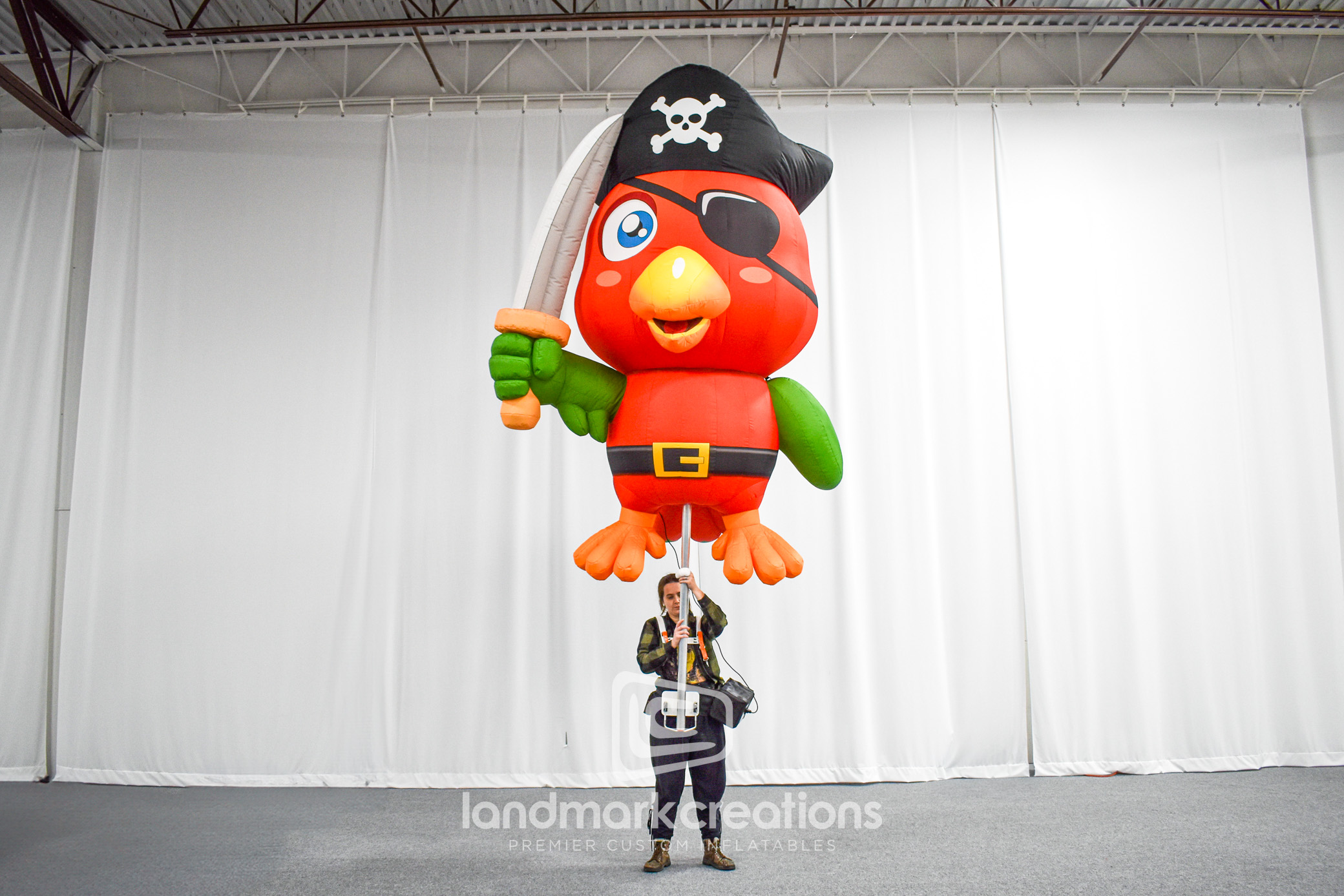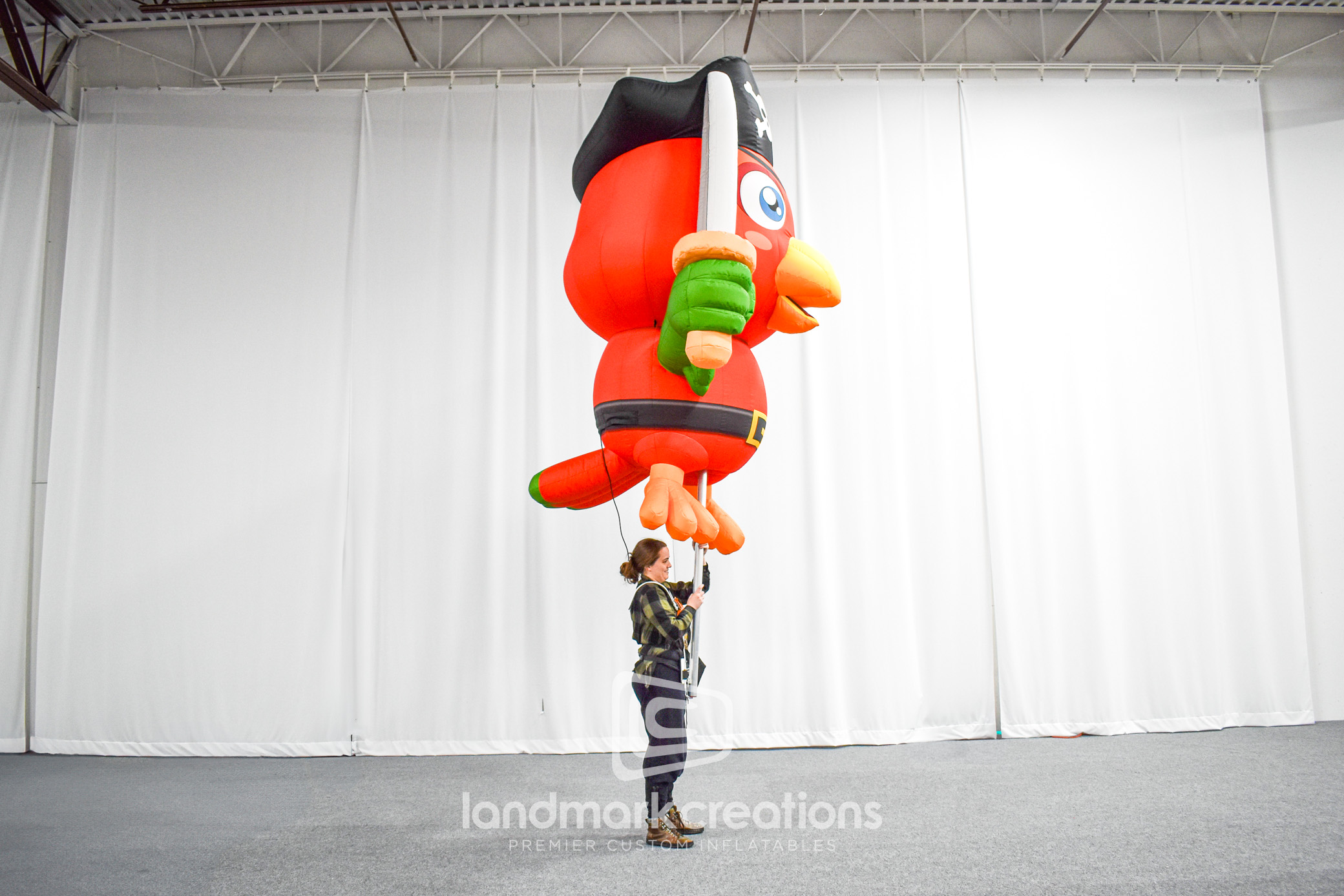 Charlotte Center City Partners partnered with Landmark Creations to design a lively, 10-foot-tall pirate parrot inflatable pole puppet. This cartoon-inspired character was created to bring fun and energy to holiday parades, making it a standout addition to community celebrations. Perfect for engaging audiences and creating vibrant photo opportunities, this custom inflatable demonstrates how imaginative designs can elevate public events. Let us help you create unforgettable experiences with tailored inflatable characters.